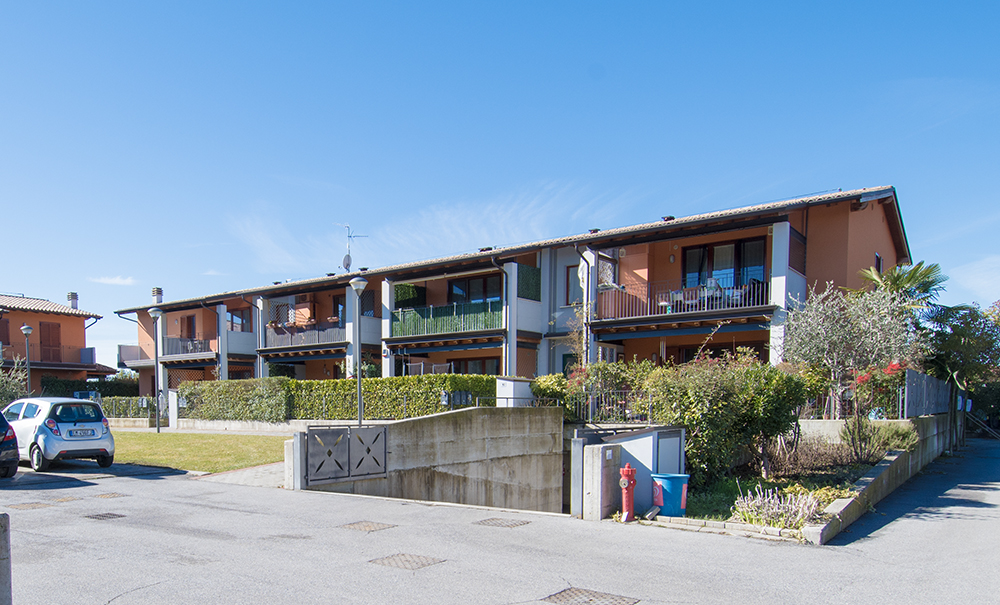 L'intervento realizzato a Manerba per una Cooperativa edilizia in regime di edilizia convenzionata è composto da 25 alloggi, progettati secondo la tipologia delle case a corte. Gli alloggi sono disposti su due piani fuori terra ed un piano interrato, dove sono ubicate le autorimesse ed i locali di deposito. Una scala interna serve gli alloggi, dall'interrato fino al primo piano. Gli alloggi sono di due tipi: alcuni a schiera, con i tre piani di pertinenza, e altri su un piano ( terra o primo). Tutti gli alloggi hanno un portico o un terrazzo davanti al soggiorno ed un piccolo giardino privato. Al centro della corte un vasto giardino comune crea uno spazio aperto di verde, mentre i parcheggi pubblici sono disposti prima dell'accesso alla corte, che pertanto non sarà invasa da auto. La struttura costruttiva è stata realizzata secondo le ultime norme in materia di antisismica ed i materiali costruttivi sono tratti dalla tradizione del luogo: muratura intonacata e logge e tetto in legno.
